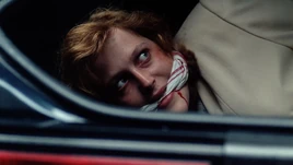 At the summit, Mulder discovers Scully's car, which is empty but has blood all over the steering wheel. Searching the trunk, he finds her cross necklace, which also has blood on it. A blinding light appears through the trees and Mulder runs toward it into a clearing, where he finds a jubilant Duane. When Mulder demands to know where Scully is, Duane only responds, "They took her!" As Mulder handcuffs Duane, the blinding light appears again, causing Duane to panic until Mulder realizes it's the spotlight of an approaching helicopter.