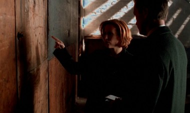 Scully and Doggett are at the fresh crime scene, where Scully explains that it is possible that the killer can