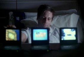 While Scully tries to piece together the meaning of the symbols on the spaceship beached in Africa, Mulder is imprisoned by his own frenetic brain activity.