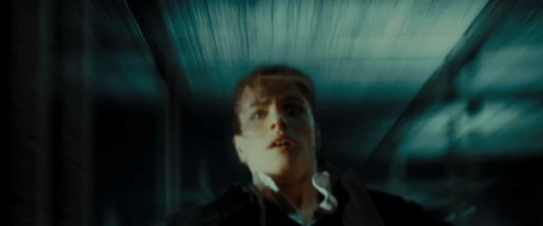 Her cage halts near the man who was attacked by Agent Bannan and who is now lying on an operating table, under a green surgical shroud, still bearing the facial wounds from his assault, as tears of blood fill his eyes and trickle down the sides of his face.